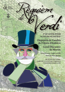 Concierto Requiem de Verdi Orquesta de Cámara de la Ópera de Andorra y Coral Discantur de Murcia Director: Pere Molina Dirección coral: Àngel Carrillo Fecha: 17 de enero. Hora: 19:30 h. Lugar: Auditorio municipal (plaza de La Virgen, 16). Precio: 8 €. Venta de entradas: Casa de la Cultura, www.agendacullera.com y en taquilla.