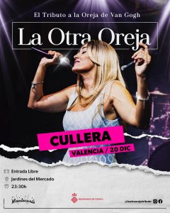 Concierto- Tributo a La Oreja de Van Gogh La otra Oreja Fecha: 20 de diciembre Hora: 23:30 h Lugar: Jardines del mercado (pl. de la Virgen, 16) Entrada libre.