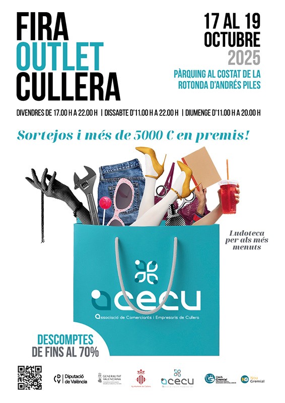Llega la primera FERIA OUTLET a Cullera. ¡Aprovecha! Encontrarás descuentos de hasta el 70% en moda, zapatos, complementos y mucho más… Y con una ludoteca para los más pequeños.